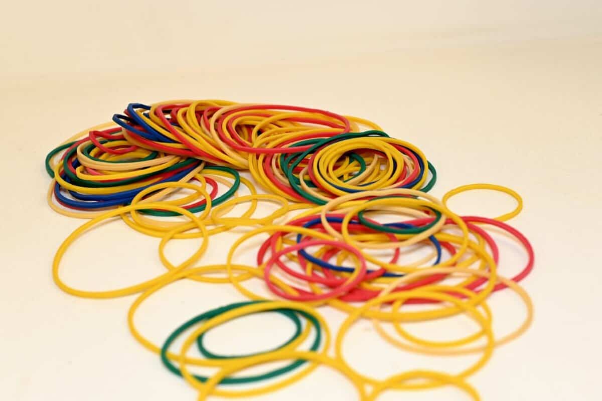 Alte Gummibänder verlieren mit der Zeit ihre Spannkraft, reißen schnell und sind im Alltag wenig zuverlässig. Deshalb lohnt es sich, regelmäßig auszusortieren und nur eine kleine, brauchbare Menge zu behalten.